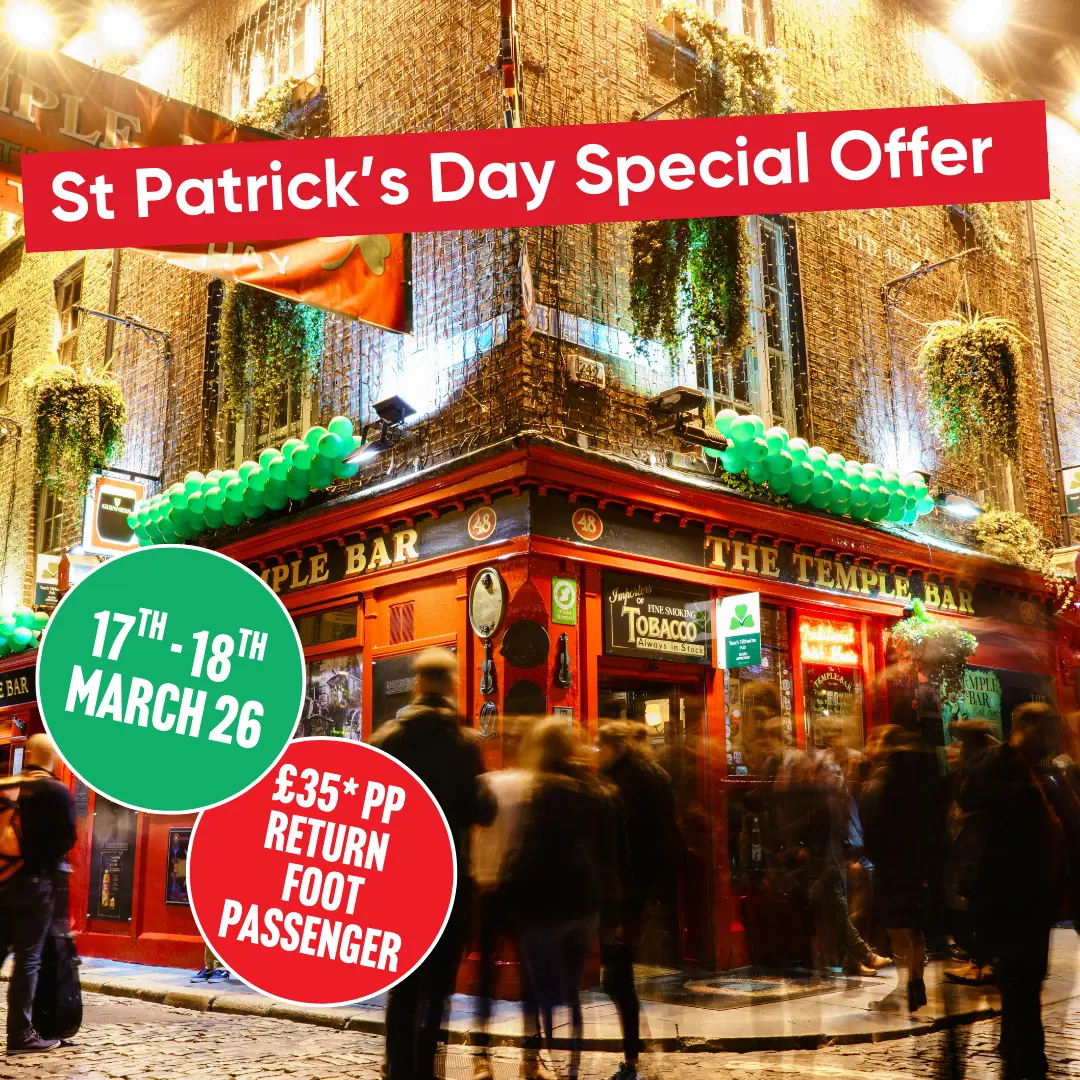Whether you’re heading home to celebrate with family and friends or travelling across to experience Ireland’s biggest day for the first time, this special offer brings the heart of the celebrations within easy reach. Sail from Douglas to Dublin in time for St Patrick’s Day itself, arrive ready to soak up the atmosphere, parades, live music, and unmistakable Irish welcome. Then return to the Isle of Man the following afternoon, giving you time to enjoy the city at a relaxed pace.